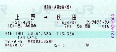 ◆上野(21:45)〜秋田(06:47) 上越・羽越本線