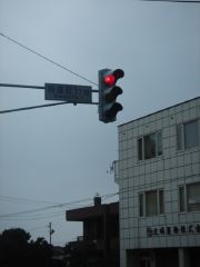 雪国仕様の信号機(縦) ◇ 留萠駅舎