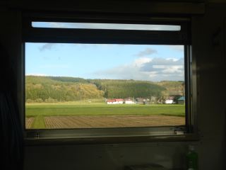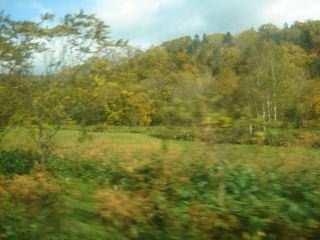 深川からはスーパー宗谷1号でもちろんグリーン車。旭川を出ると右側に大雪山が見えるはずだが雲が低くて見えない。宗谷本線は名寄までは高速運転に対応しているが、名寄以北では対応していない。だから名寄駅前後でのスピード感が違う。ちなみに札幌〜名寄までの表定速度は95.4km/hだが、名寄〜稚内まででは67.9km/hと激減する。スピードが落ちたからではないが、名寄を過ぎてから紅葉がさらにきれいになる。白樺の幹が白くてきれいだ。白樺の葉は赤くならずに黄色くなるようだ。白樺の近くに赤く色づく木があると、白・黄・赤・緑の彩りが美しい。