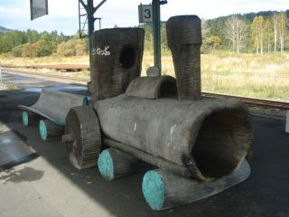 木製の蒸気機関車@ホーム ◇ 木製の行き先とのりば案内