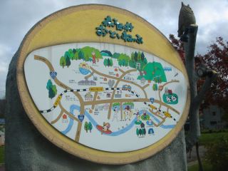 道の駅(森と匠の村) ◇ 車止めも木製のふくろう