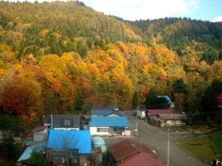 炭鉱やメロンで栄えた夕張市は、「炭鉱から観光へ」のかじ取りがうまくいかずに、最近では財政破綻から財政再建団体になってしまった。そんな地元の寂しさを包み込むように1両セミクロス固定式(ボックス式)の車両が登り坂を駆け上がっていく。急な登り坂のようでかなりのパワーを出してゆっくりと登っていく。昔はこの路線は夕張炭鉱からの石炭を室蘭港まで運ぶために多くの貨物列車が通り、戦後の日本経済の復興を支えたはずだ。栄枯盛衰。虚脱感のある山からの冷たい秋風は、街に冬を告げる前に夕張の財政に冬を告げたようだ。山の紅葉も、他の地域よりも赤色が多いのは気のせいだろうか。26分で終点の夕張駅に到着した。夕張駅のすぐそばにホテルマウントレースイという巨大なホテルがある。この将来もどうなるのだろう。
