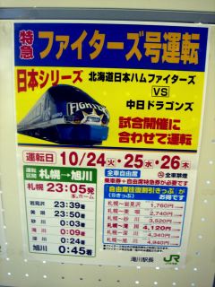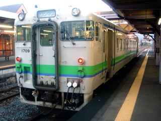 富良野からは富良野線で旭川まで行く。6-7月頃はこのあたりはラベンダー人気でおそらく大賑わいになるんだろうな。今日は時期も違うし日も暮れている。平日の夕方なので高校生が中心である。人の移動が多いのか、車両は2両のセミクロス(2列+1列タイプ)であった。中富良野駅や上富良野駅で高校生は大量に下車した。ここらあたりまでが通学圏なのだろう。