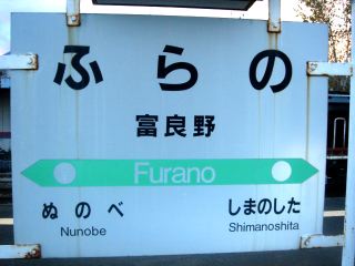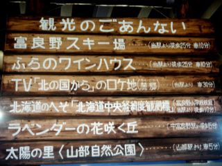 新狩勝トンネルを抜けると落合駅である。妻の旧姓なので記念にパチリ。元広末涼子ファンとしては、映画“鉄道員(ぽっぽや)”の幌舞駅の舞台となった幾寅駅も見逃せない。幾寅駅には依然と“幌舞駅”の看板も残っていた。幾寅を過ぎると右側に、かなやま湖が見えてくる。車掌に変化があって楽しい区間だ。鉄橋で湖を渡り、金山駅を過ぎると空知川に沿って進路を北に変え、“北の国から”やラベンダーで有名な富良野はもうすぐである。
